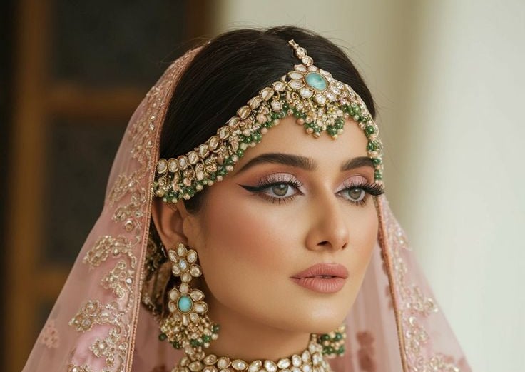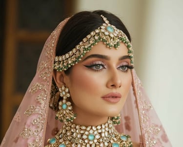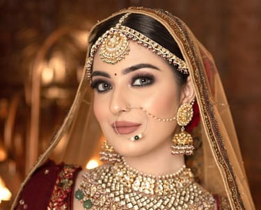 Stunning bridal makeup with perfect detailing, making you look breathtakingly beautiful on your wedding day.